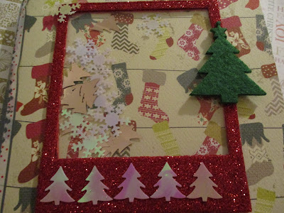 Detalle del papel decorado, en tono verde con textura de purpurina, los troqueles son de Sizzix, el negativo de los pajarillos, lo he pegado en la otra página.