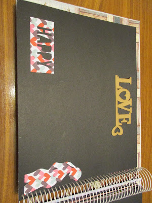 Esta página en particular, me gusta mucho, tres cuadrados para poner fotos, se completa la decoración con unos pequeños globos y corazones troquelados.
